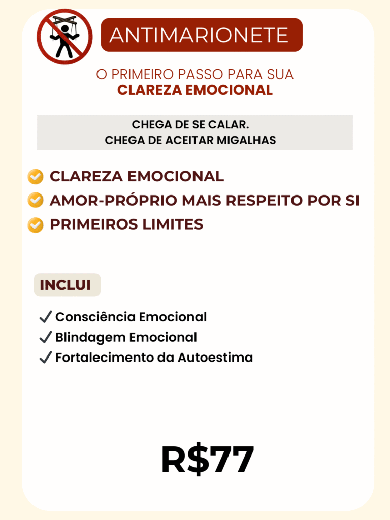 O Anti-Marionete é para quem cansou de ser controlada emocionalmente e quer retomar o próprio valor.